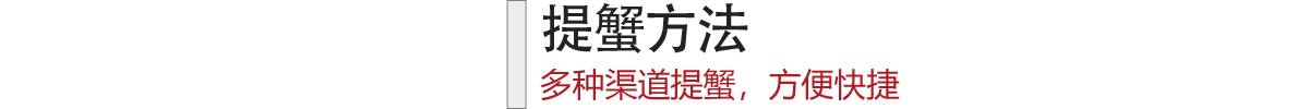 配套:蟹醋、姜茶、紫蘇包、蓄冷袋、食蟹三件套(剪刀、蟹針、勺子)
